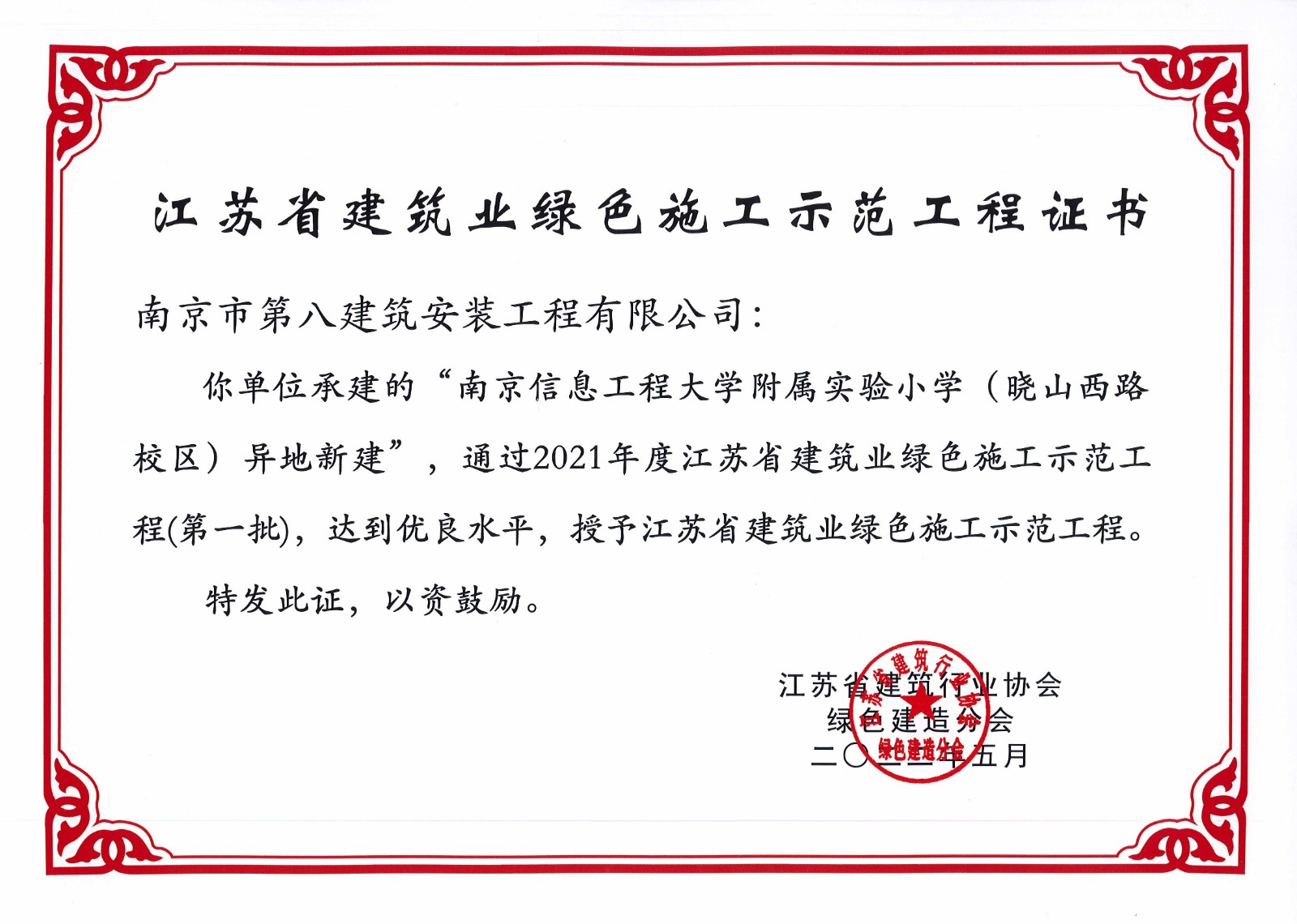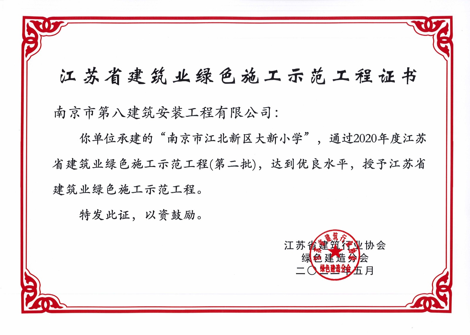 江北新區(qū)大新小學等3個項目榮獲江蘇省建筑業(yè)綠色施工示范工程